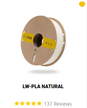 Foaming LW-PLA (Light Weight PLA). The recommended filament is Colorfabb LW-PLA. All of the design, testing and validation has been done with this filament and the <250g credential is guaranteed with it. Other filaments can of course be used but results may vary. The following additional filaments are also needed PETG, TPU.